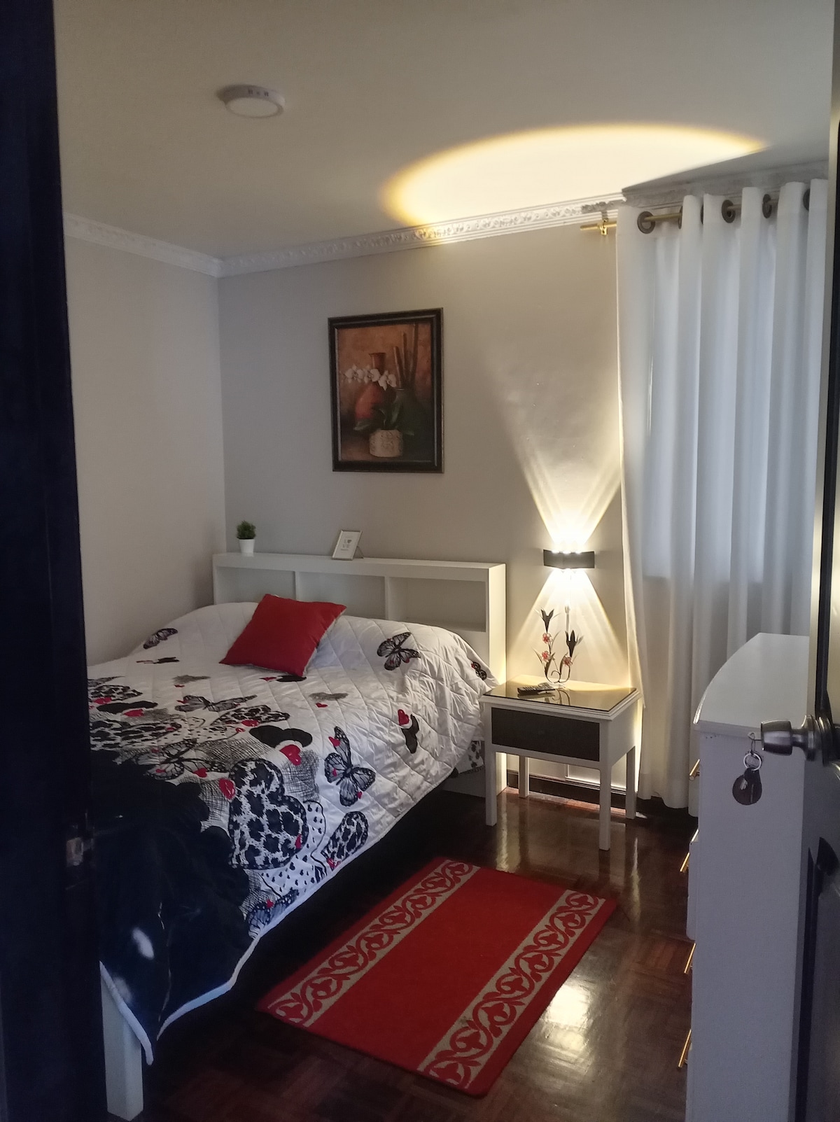 Disfruta de un departamento nuevo, privado y diseñado para ofrecer tranquilidad, seguridad y comodidad. Aquí encontrarás un espacio elegante, limpio y acogedor, con un dormitorio equipado con colchón de 2 plazas memory foam y un colchón auxiliar dentro del somier, duvet y almohadas ortopédicas para un descanso profundo. Además, 1 sofá cama de dos plazas muy cómodo con su ropa de cama completa. El parqueadero es techado y seguro, ideal para proteger tu auto del sol, lluvia y miradas externas.