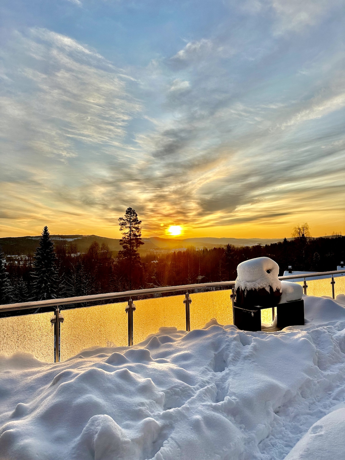 Magical views meet you in this beautiful and newly built (Dec-21) 50 sqm flat with two bedrooms and six beds, open kitchen and living room with panoramic window, balcony, sofa bed and fireplace. The feeling is that you are entering a small house since you enter from the ground level. You are close to the ski slope, Järvzoo, the cross-country tracks, the padel hall and restaurants in the village. The lodge's amenities include sauna with a view, social areas and a laundry room.