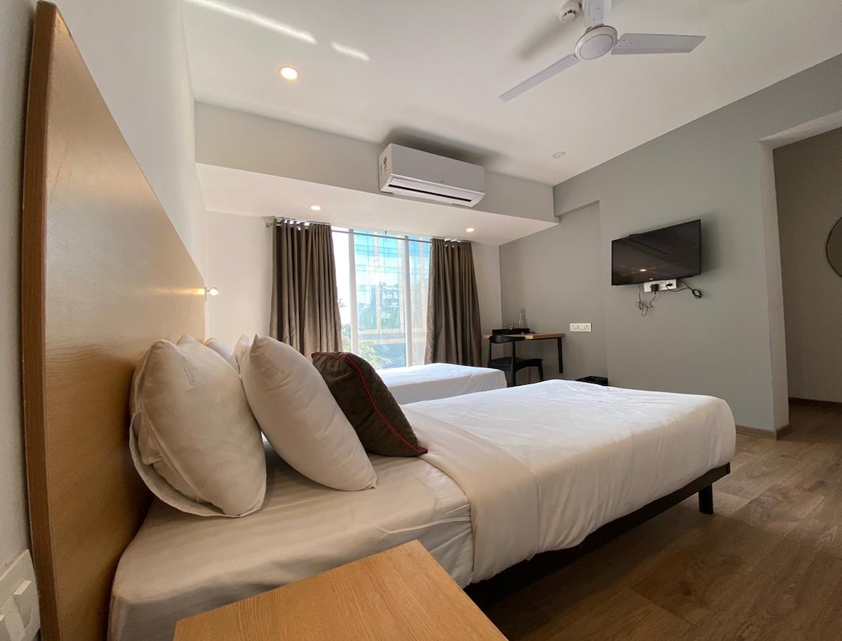 The spacious rooms with LED TVs, air-condition, comfortable beds and all essentials are maintained to comfy your stay. Our home-like place will make you feel highly relaxed. The necessities like water geysers, toiletries,Linen, Chef on request, all essential, high-speed internet connections are well taken care of.