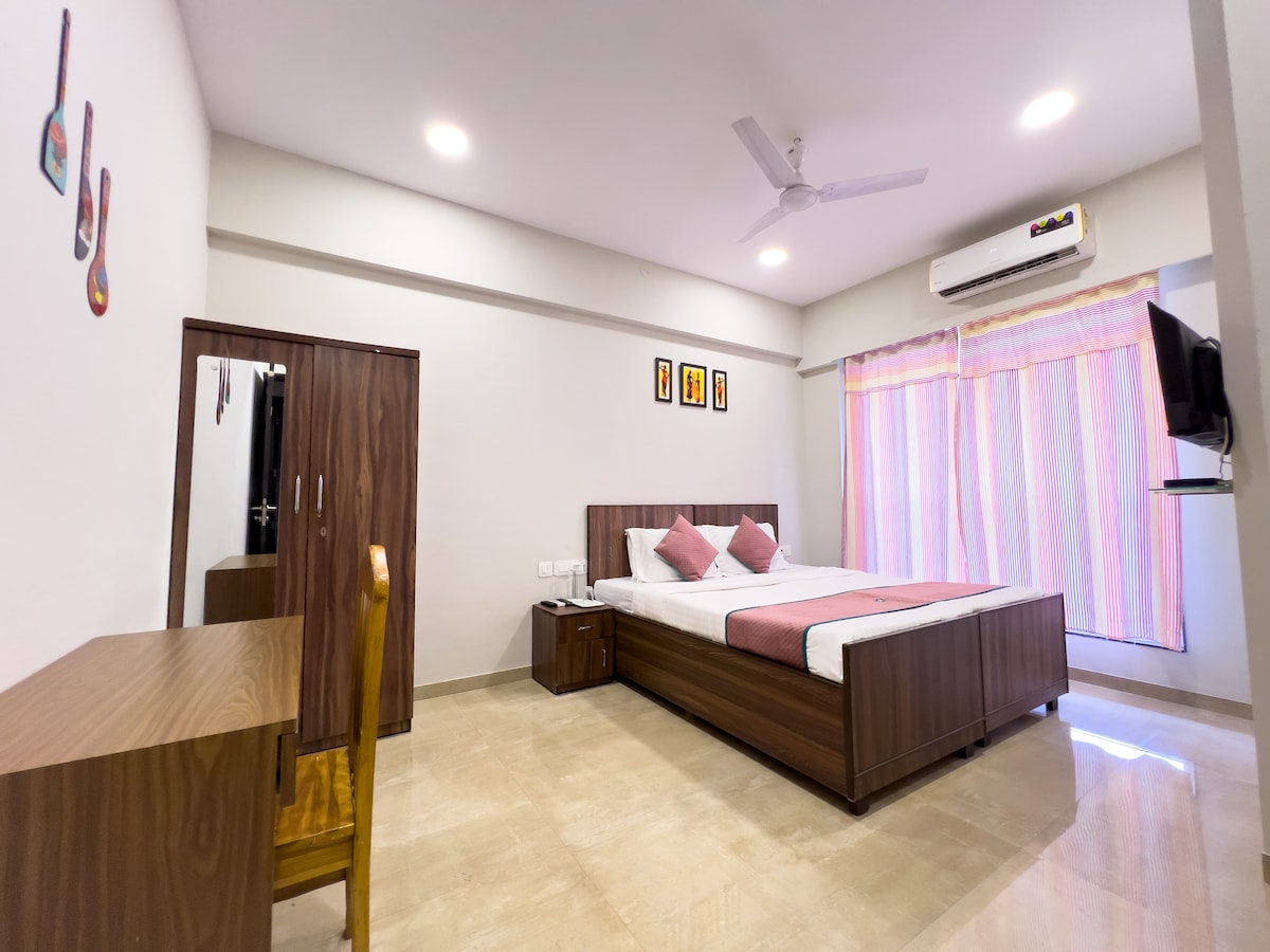 Charming one-bedroom studio apartment, perfect for families, business or solo travelers seeking a private, home-like retreat. Enjoy a king-sized bed, fully equipped kitchen with induction cooktop, microwave, mini fridge, and cookware, plus modern amenities like a flat-screen TV, AC, washing machine, and a dining table for two.. Managed by a professional hospitality team, this stylish space ensures privacy, safety and comfort. Book now for a luxurious stay in a prime location of Mumbai.