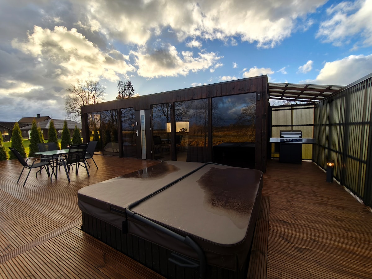 Kick back and relax in this calm, recently finished (August 2022) cozy Saunahouse with an outdoor patio and eating area near Lake Viljandi. Saunahouse is located in a private yard and is perfect for 2 people, though an extra is possible. As the sauna is located in a private yard, there will be two extremely friendly Leonbergers (see the picture at the end) freely roaming around yard and maybe looking for belly-rubs or two, which is something to be considered.