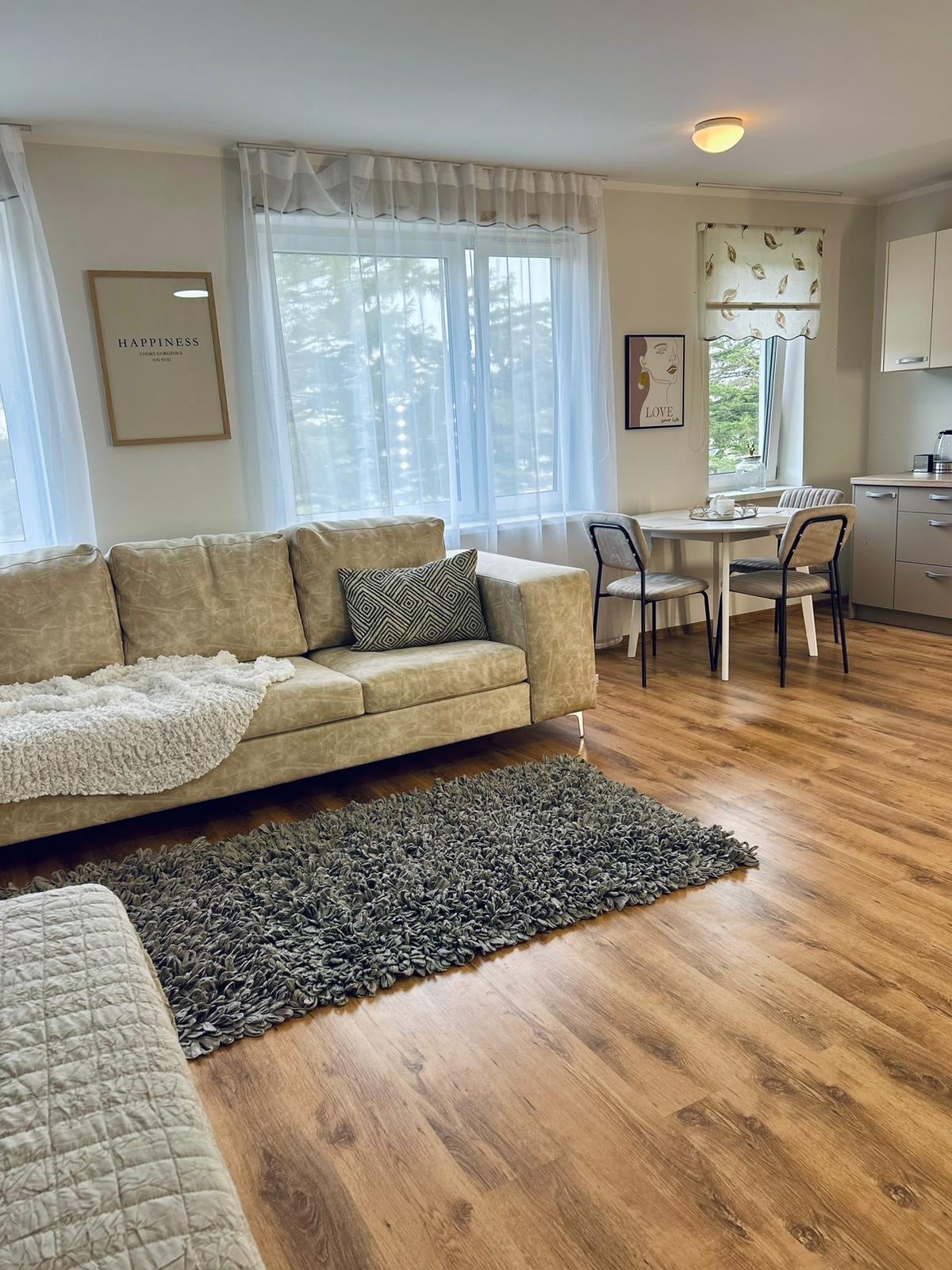 Welcome to our modern studio apartment located next to Viljandi's castle ruins. With a stylish design and great amenities, our apartment is perfect for up to three guests. You'll enjoy comfortable sleeping arrangements with a sofa bed and double bed, and fully equipped kitchen. Our apartment is just a short walk to the theater and city center. Stay connected with super-fast WiFi or enjoy downtime in our cozy and chic apartment. Book your stay today and experience the best of Viljandi.