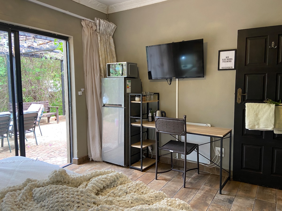 Keep it simple at this peaceful and centrally-located place. This Room has a King Sized Bed. It is private and features under roof parking, with remote access, right in front of your room. Load-shedding is not a problem with a dedicated inverter running some lights and super speed WIFI - ensuring you are never left in the dark!