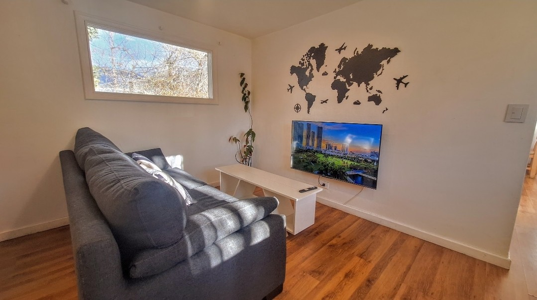 Si la idea es descansar y conectarse con la naturaleza, éste es el lugar. Ubicado en Circuito Chico brinda la posibilidad de realizar recorridos a pie o en kayak que serán recuerdos inolvidables. Bajando la escalera pueden acceder a una tranquila playa en la costa del Lago Moreno o disfrutar de la vista desde el deck o el jardín. Éste pequeño y acogedor estudio es la forma que encontramos de compartir nuestro lugar en el Mundo. Es indispensable tener auto.