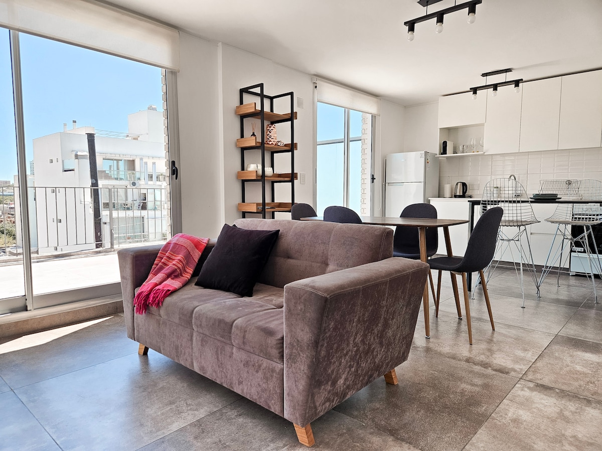 Cálido y moderno departamento con cochera y pileta