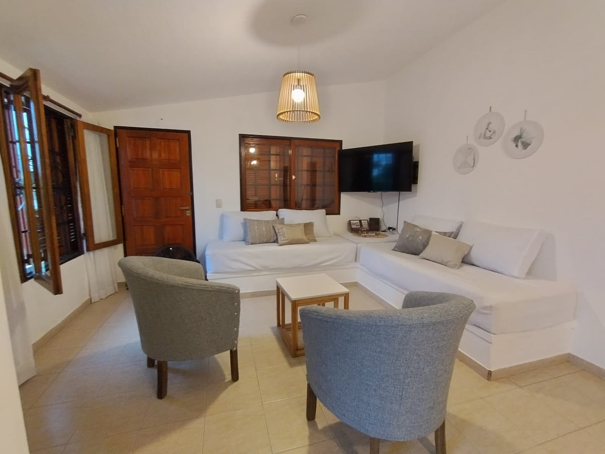 Casa pensada para ser funcional y cómoda, para disfrutar tanto adentro como afuera. 2 dormitorios y 2 baños, 2 camas dobles (1 es cama Queen) y 2 individuales. Cuenta con quincho garage, con parrilla y baño. Garage cubierto. Portón eléctrico con control remoto para el ingreso. Sala de estar con TV 55´ home theater, la cocina está remodelada, amplia y completa con freezer, microondas, tostadora, igual que el baño el cual tiene ducha y bañera (no tiene tapón porque corre riesgo de inundación)