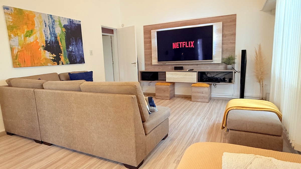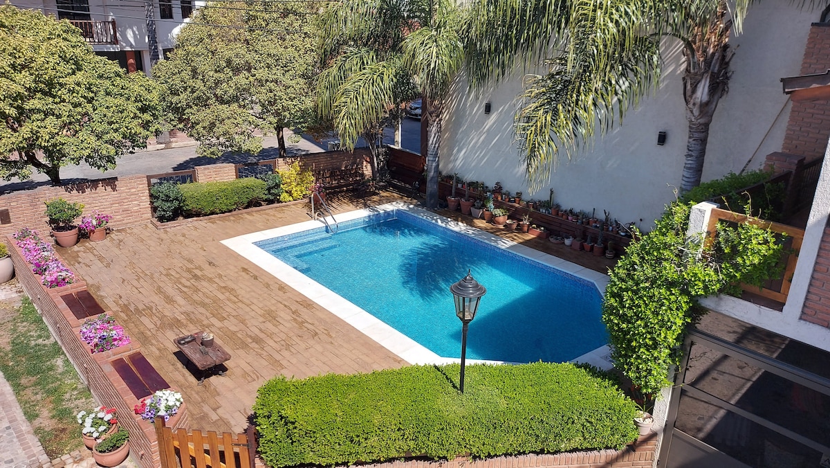 A solo 50mde la costa del lago, ideal para pasear, hacer deportes al aire libre y disfrutar de cafés, restaurantes y heladerías cerca del agua. Ubicación estratégica para deportistas, familias o grupos que asisten a torneos o encuentros en el Polideportivo Municipal Arenas o el Club de Rugby. Todos están a pocos minutos en auto o incluso a pie. En caso de venir con vehiculo, la capacidad del mismo es para un auto mediano.