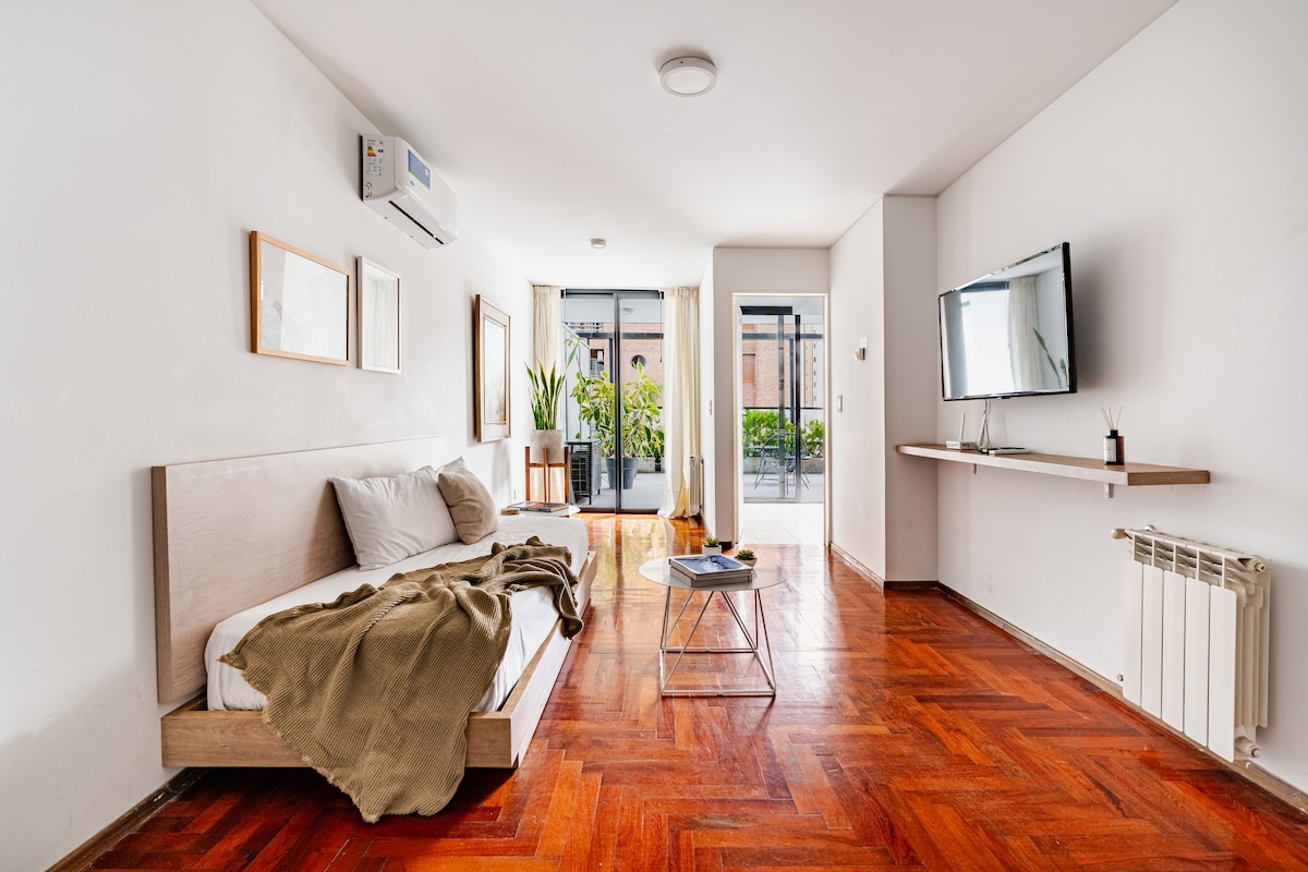 现代单人公寓,距离市中心10分钟,私人庭院/烧烤。