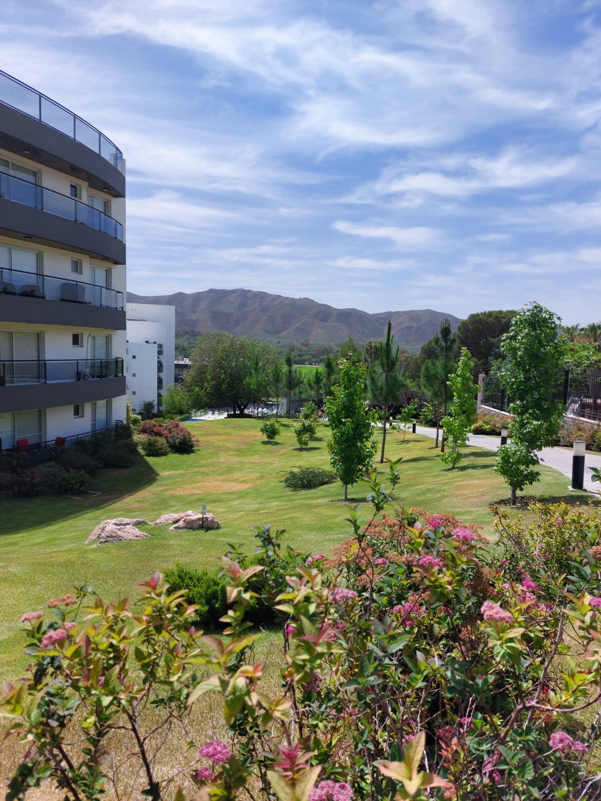 Balconies overlooking the mountains, terrace with barbecue grill, 3 bedrooms and 3 bathrooms, closed neigborhood with guard (police), outdoor swimming pool next to the lake, gym, big garden and down to the lake for jet skiing. Pets friendly. Free parking and WiFi, 4 air conditioners, heating, microwave, washing machine and dishwasher. Direct TV. Less than 1 mi from Cuckoo Clock (20 min walking) and 1.2 mi from the Uruguay bridge. Bus stop in front of the property.