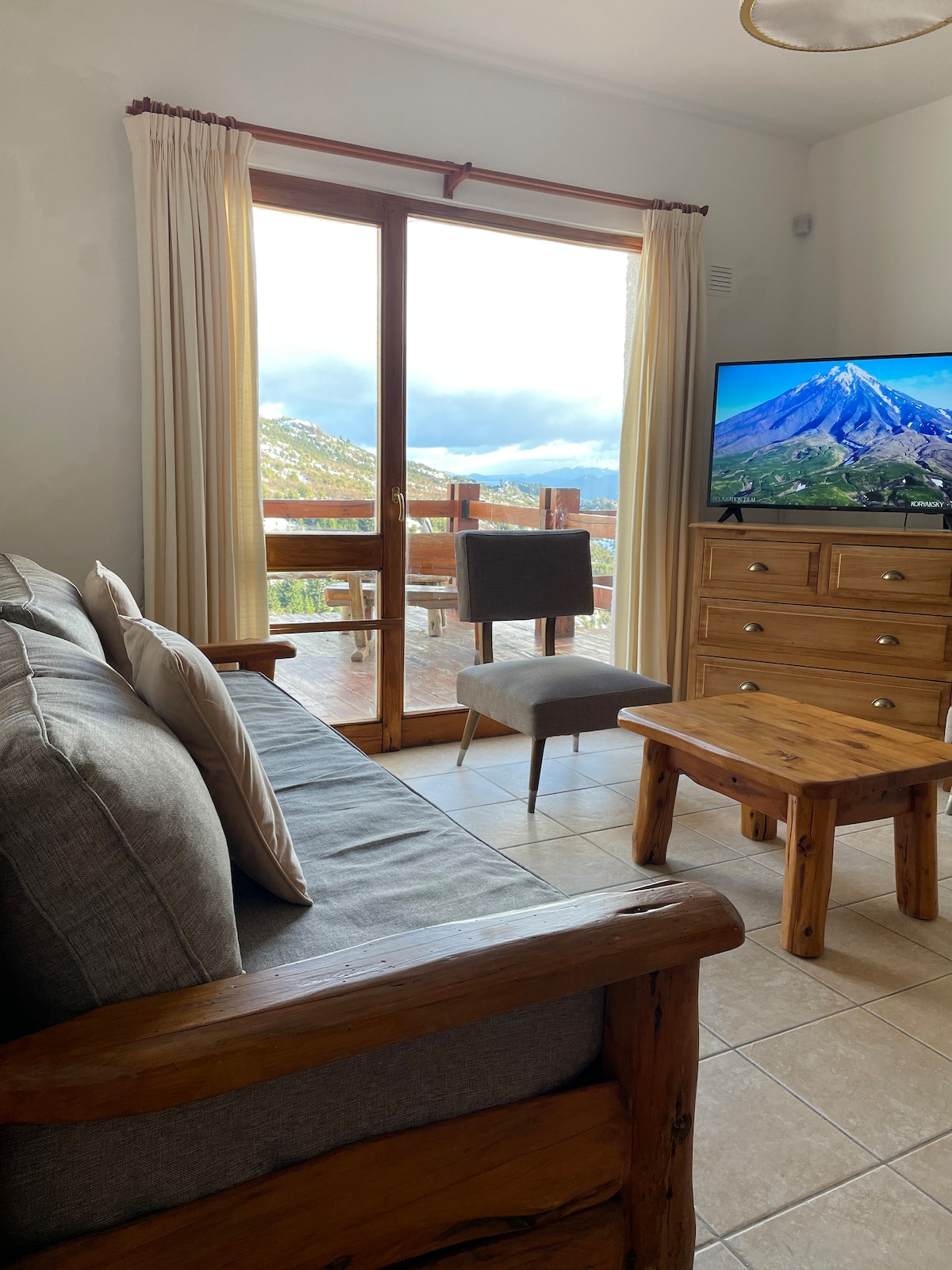 Muy cálido y cómodo estudio en PB a 300 metros de los medios de elevación del centro de Ski Catedral Alta Patagonia. Vista directa a la montaña ! El departamento cuenta con calefacción por radiador de agua. WIFI. Direct TV . 3 camas individuales. Posee 1 Baño completo con bañadera. Cocina equipada con Microondas, cafetera. Muy buena calefacción y agua caliente.