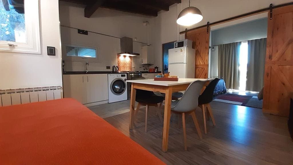 Muy cómodo estudio en PB a 300 metros de los medios de elevación del centro de Ski Catedral Alta Patagonia. Vista directa a la montaña ! El departamento cuenta con calefacción por radiador de agua. TV SMART 43" WIFI. Direct TV . Cama matrimonial para 2 personas y 1 cama individual. Posee 1 Baño ( con ducha). Cocina equipada. Muy buena calefacción y agua caliente.