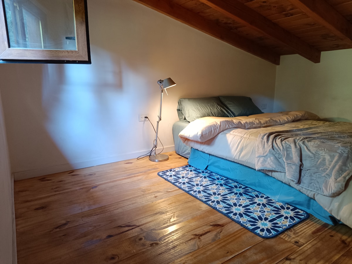 Our cozy Patagonian-style cabin by Lake Gutiérrez is perfect for 4 guests. It features two bedrooms and two bathrooms, a fully equipped kitchen, a small dining area, and a spacious private garden with exclusive access to a beach and dock. A unique spot to relax in nature with all the comforts of home. Guests have the whole place to themselves, but upstairs and the main living room remain closed. Full house rental is a different listing.