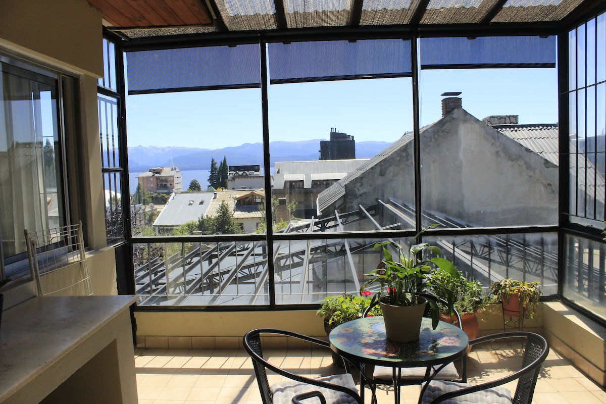 Departamento céntrico de 2 ambientes y patio interno , cálido y muy luminoso en planta baja , ideal para visitar Bariloche en pareja o amigos. Servicio de wifi, smart tv, calefacción por loza radiante, agua caliente, ropa de cama , toallas..Cocina con Heladera con freezer, microondas, extractor, cafetera, pava eléctrica, tostadora, vajilla y utensillos de cocina.