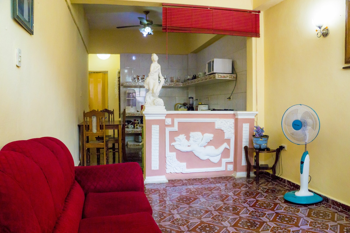 En el corazón de la ciudad, cerca de los sitios turísticos y culturales Tren Blindado, Monumento histórico del Che, Teatro La Caridad, Loma Capiro Comandancia del Che. Desde el balcón puedes disfrutar de festividades culturales en la Plaza Central y disfrutar de aire puro, apartamento con total privacidad, habitaciones amplias y limpias, cocina con todos lo necesario para cocinar y Wifi a su disposición, estaremos siempre listos para usted. Será siempre un placer recibirlos con mucho amor.