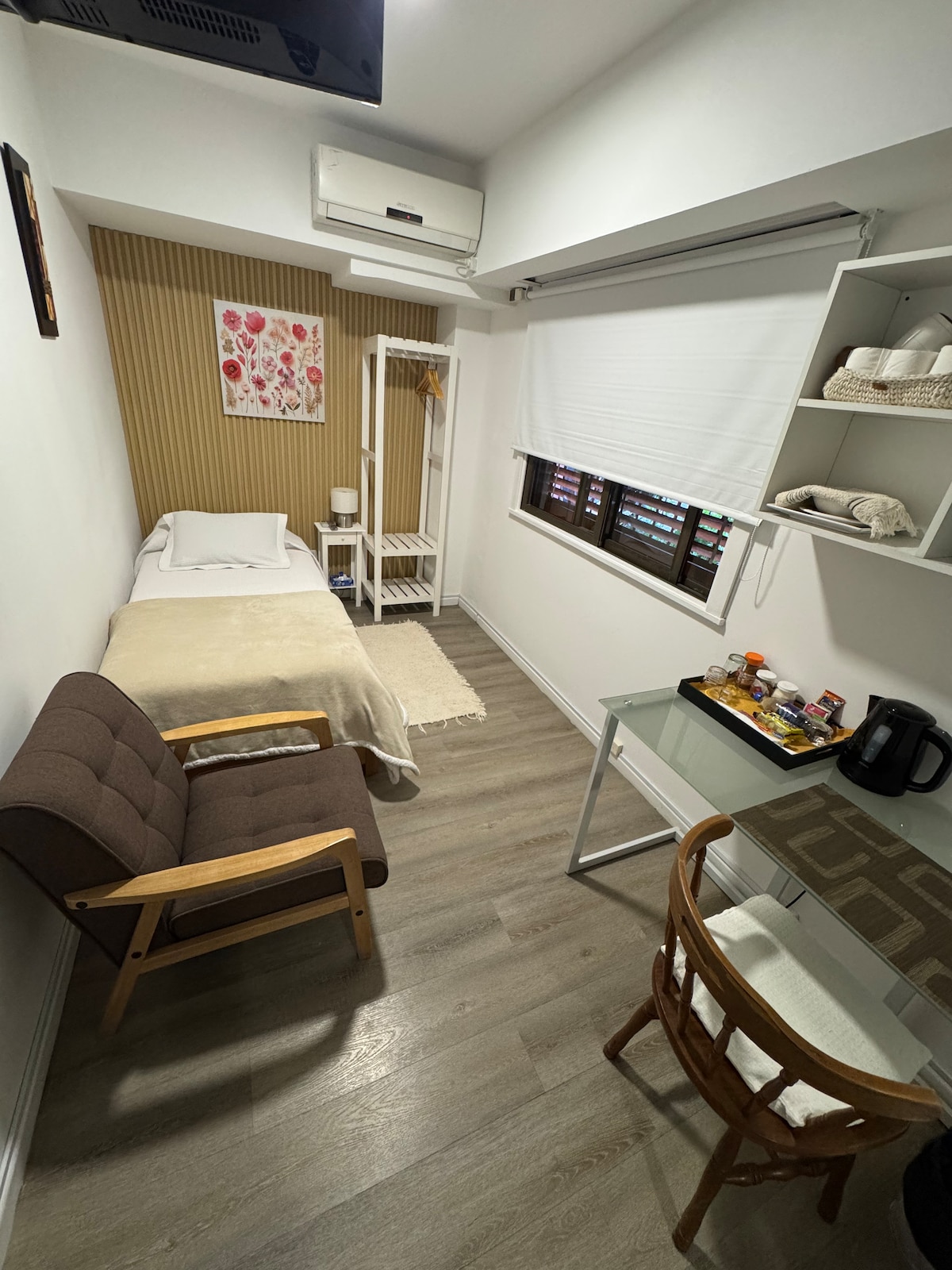 Desconecta de tus preocupaciones en este espacio amplio y sereno. Cerca de bares, restaurantes de moda, malls, buses y metros. Tiene todo lo necesario para una estadía perfecta: - Excelente wifi -Sommier queen -Aire acondicionado -TV '43 -Sofá - Mesa comedor/espacio de trabajo -Microondas, anafes eléctricos pava y tostadora eléctricas -Refrigerador -Amplio vestidor con espacio de guardado -Baño en suite con ropa blanca - Terraza con mesa y sillas para disfrutar del aire libre