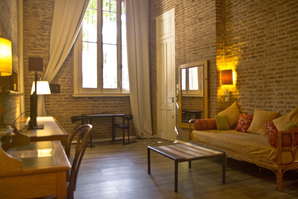 A gorgeous house, 4 bedrooms 3.5 bathrooms, 5 blocks from vibrant Palemo Soho Plaza Serrano. As you enter the house on the ground floor there is a hall, then a nice living room with fireplace, plus dining room, all looking to a nice courtyard full of plants, with a barbecue. The kitchen and a toilett complete the ground floor and then a staircase brings you to the bedrooms. On the 1st floor the main bedroom has a queen bed and ensuite full bathroom with bathtube. Other 2 bedrooms might have one queen or 2 twin beds . There is another full bathroom with an open prebathroom, 2 lavatories, and a bathtube. Finally there is an office that could also be a 4th bedroom with 2 twin bed. On the 2nd floor there is a gorgeous playroom with 3 single beds for larger groups and 2 nice terraces with tables and sunbeds to hang out in the sun. Besides a small bathroom with shower, plus laundry including washing machine and dryer. The house easily accommodates 8 persons, up to 11 considering 3 beds in the playroom. There is Wi Fi, air conditioning in all the bedrooms, living and dining room and playroom. And 2 LCDs 45"and 32” TV with cable, between other services. Maid service: 8 hours a week.
