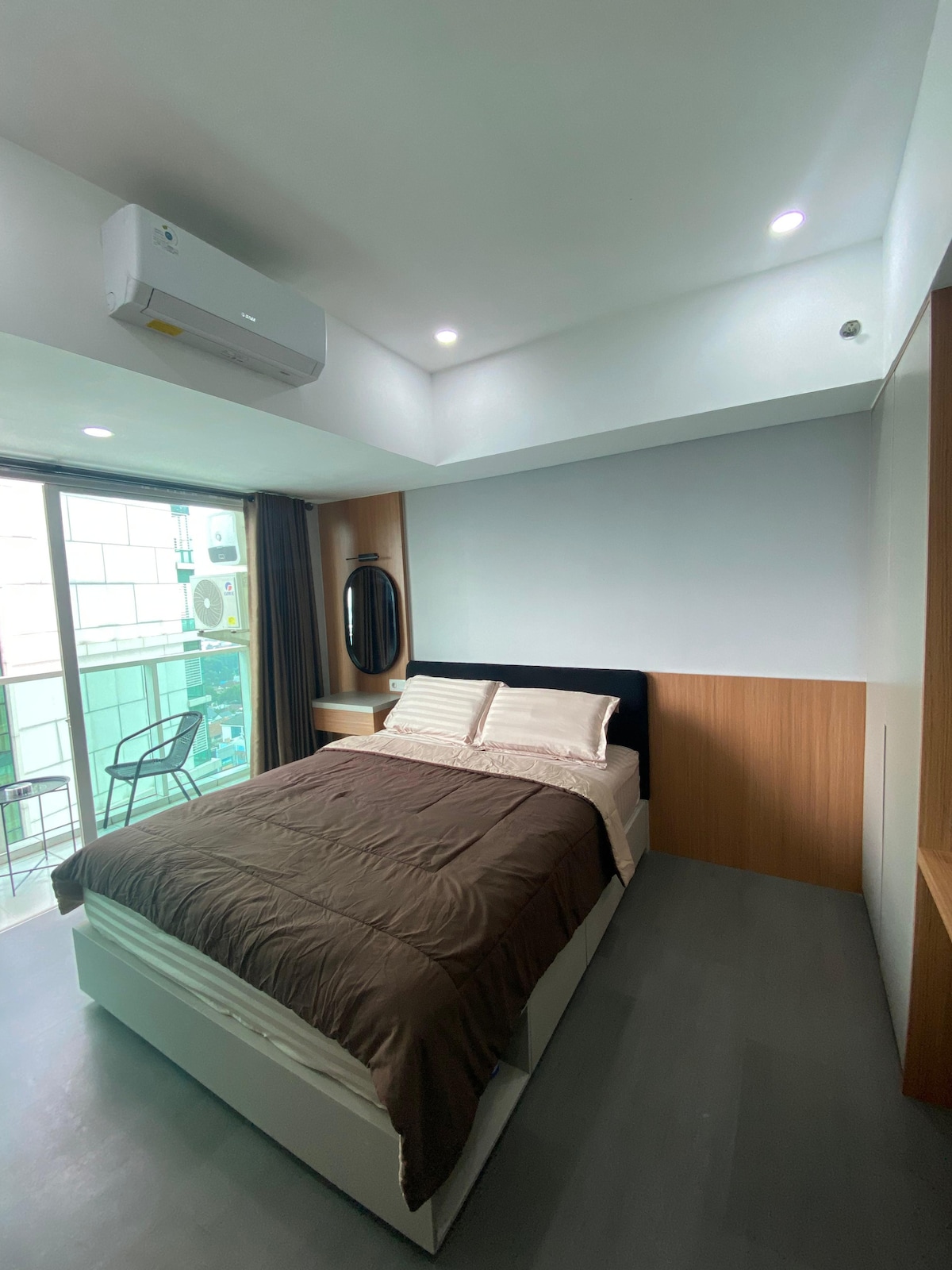 Welcome to our cozy OAOA studio apartment with a balcony to enjoy the city & mountain view! Located in strategic area only 5 mins walk to the famous Dago street, 10 - 15 mins walk to Sabuga jogging track and Bandung Zoo, ca. 35 mins to floating market Lembang by car. We accommodate up to 3 guests. We have a queen size bed 200x160 cm & a sofa bed 180x75cm, a bathroom with shower & water heater, kitchen set, and smart TV. Please read our terms and conditions before making a reservation.