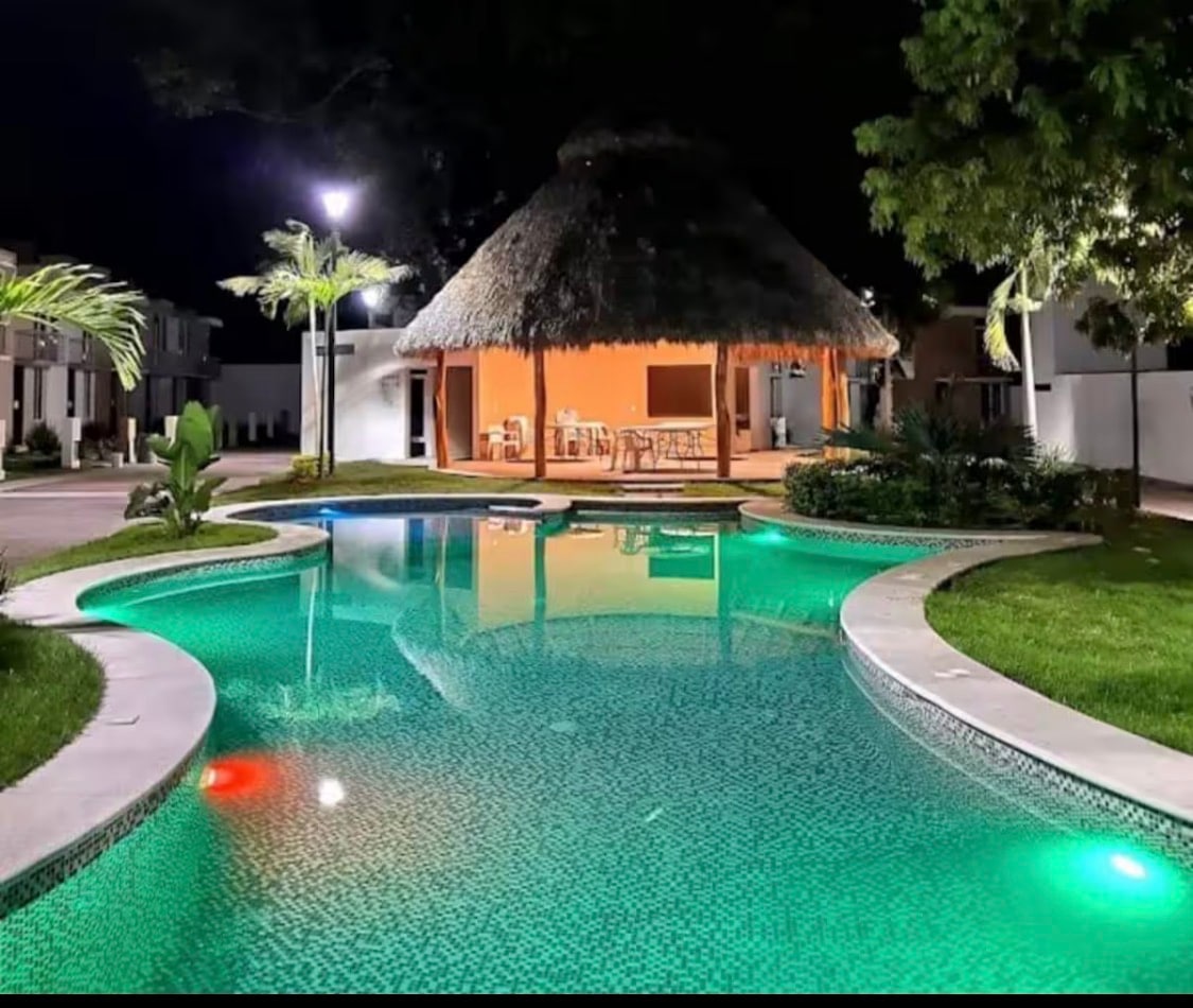 En Casa Encanto Lagunas podrás disfrutar de momentos de relajación y tranquilidad en sus cómodas instalaciones, podras refrescarte en su alberca de chukum o disfrutar de una rica cena en la terraza con asador o de un delicioso desayuno en la barra de la cocina con vista a la alberca. Estamos cerca de tiendas de conveniencia y avenidas con mucho comercio y flujo de transporte público. A 5 minutos está el periférico donde hay tiendas como Walmart. Ubicada en zona tranquila con áreas verdes cerca.