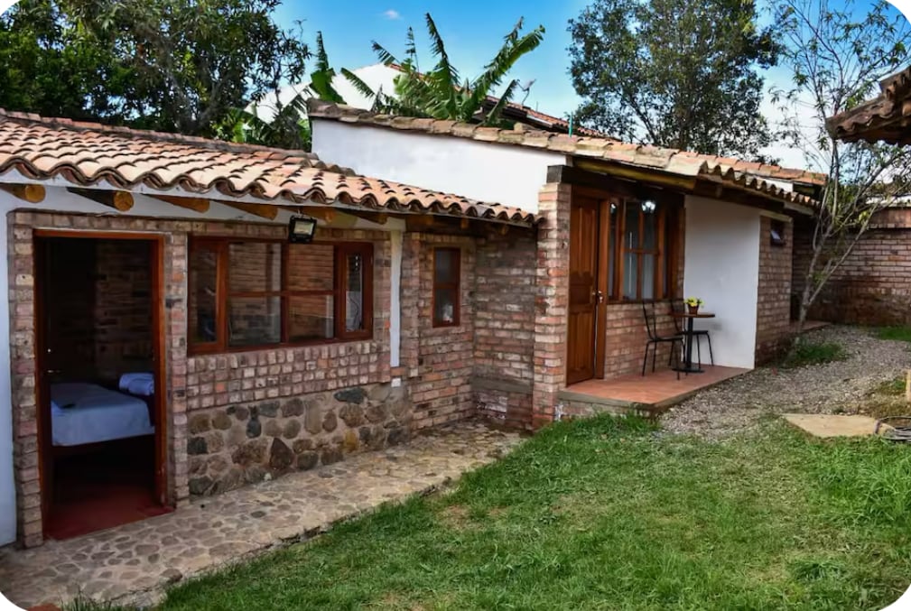 La habitación se encuentra en una casa campestre: con jardines, fuente central característica del romanticismo de la Villa, ubicada a 4 calles del inicio de la Plaza central. A 200 metros antes de Santa fe de la Villa y supermecado Colsubsidio. Incluye Parqueadero y desayuno especial Boutique (Jugo o fruta, bebidas calientes, huevos, arepa, queso, panecillos, mini- pasabocas, mermelada, mantequilla), Servicio a la mesa. Tambien, nuestros huespedes reciben tarjeta de privilegios -descuentos-