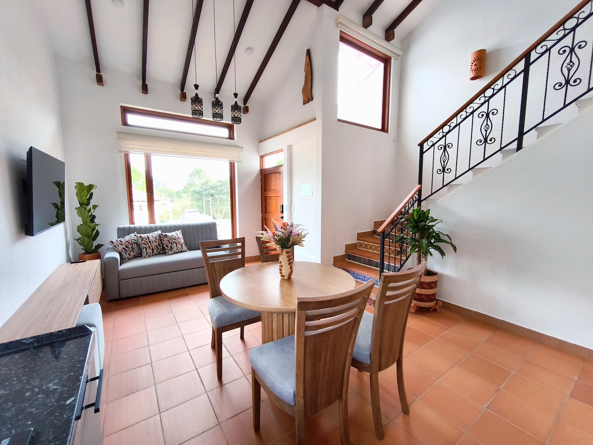 Descubre El Escondite: tu refugio ideal en Villa de Leyva A tan solo 7 kilómetros (unos 15 minutos) del centro histórico de Villa de Leyva, se encuentra El Escondite, una acogedora cabaña de piedra enclavada en medio del campo, donde la tranquilidad y la naturaleza son protagonistas. Su diseño combina la calidez de la arquitectura tradicional con un interior moderno tipo loft, amplio y luminoso. Cada rincón ha sido cuidadosamente decorado para brindar una experiencia confortable y acogedora.