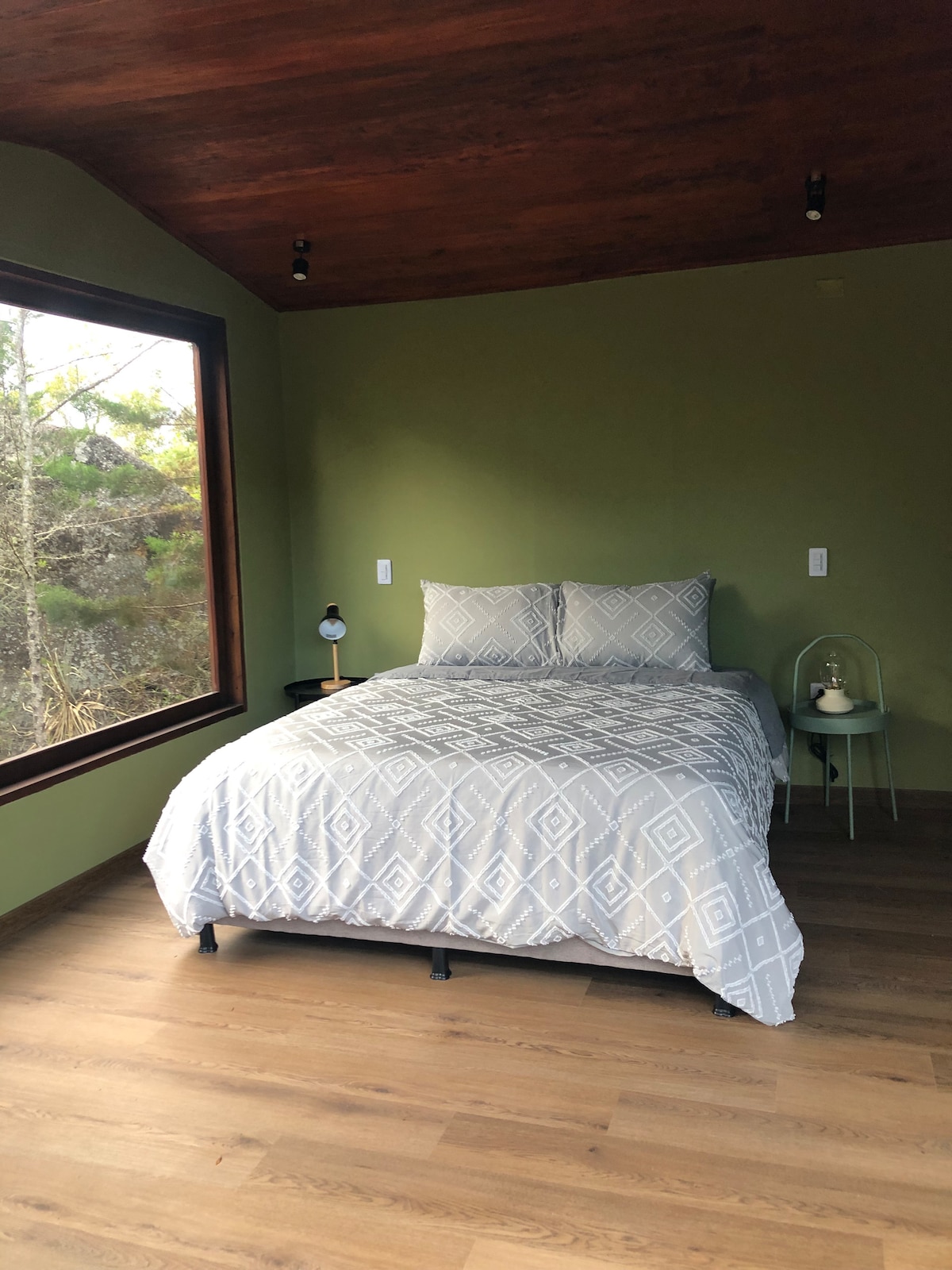 Disfruta de una estancia única en nuestra acogedora cabaña de madera, situada en una tranquila reserva natural urbana, a unos pasos del encantador Centro Histórico de Villa de Leyva, equipada con todo lo necesario para brindarte máxima comodidad, rodeada de amplias zonas verdes perfectas para relajarte, podrás disfrutar de un comedor exterior ideal para compartir momentos al aire libre, y una hermosa vista panorámica desde el balcón de la habitación principal, excelente internet y parqueadero.