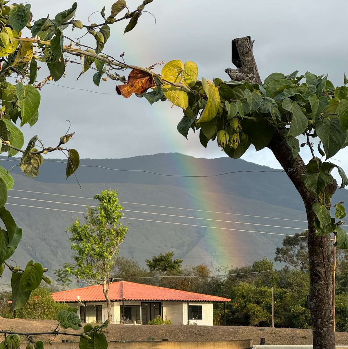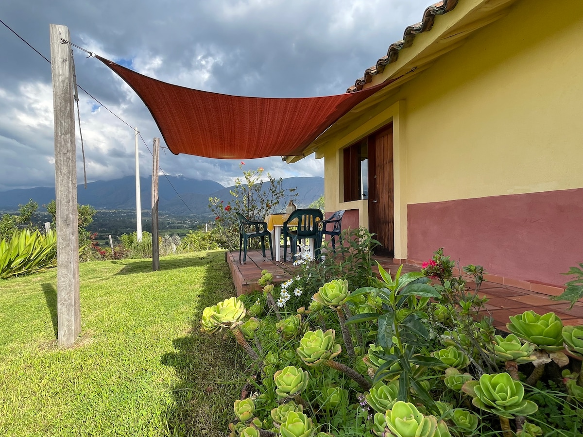 Acogedora cabaña para parejas y familias, muy cerca del pueblo histórico de Villa de Leyva (1 km) y a la vez en medio de un paraíso campestre único. Nuestros huéspedes pueden disfrutar de amplios jardines, lago y preciosos senderos naturales. La cabaña tiene tres maravillosas habitaciones, 3 baños, sala-comedor, cocina moderna que se abre a un porche absolutamente espectacular. La cabaña está alejada de la casa principal de mi familia, tiene excelente privacidad, y también gran seguridad!!