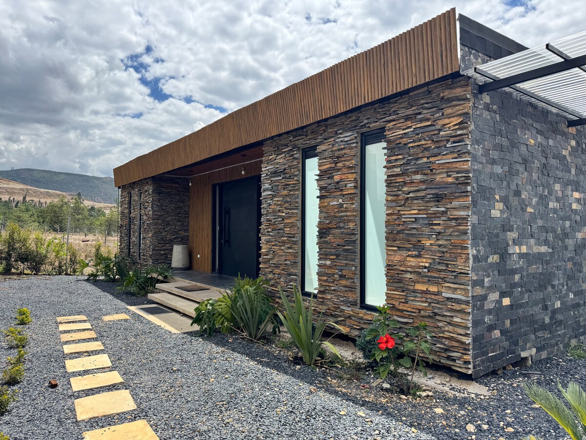 La casa tiene un bello diseño arquitectónico, es cómoda, acogedora, con espacios para el teletrabajo y está muy bien equipada. Es tibia y muy iluminada. Tiene bellos jardines y una vista maravillosa a las montañas. Ideal para amantes de la naturaleza. El clima es agradable y poco lluvioso. Tiene Wi-Fi, TV por cable y agua caliente. A 12 minutos del pueblo en carro y cerca de las principales atracciones de la Villa: Pozos azules, Granja de las avestruces, Infiernito y Parque de los Dinosaurios.