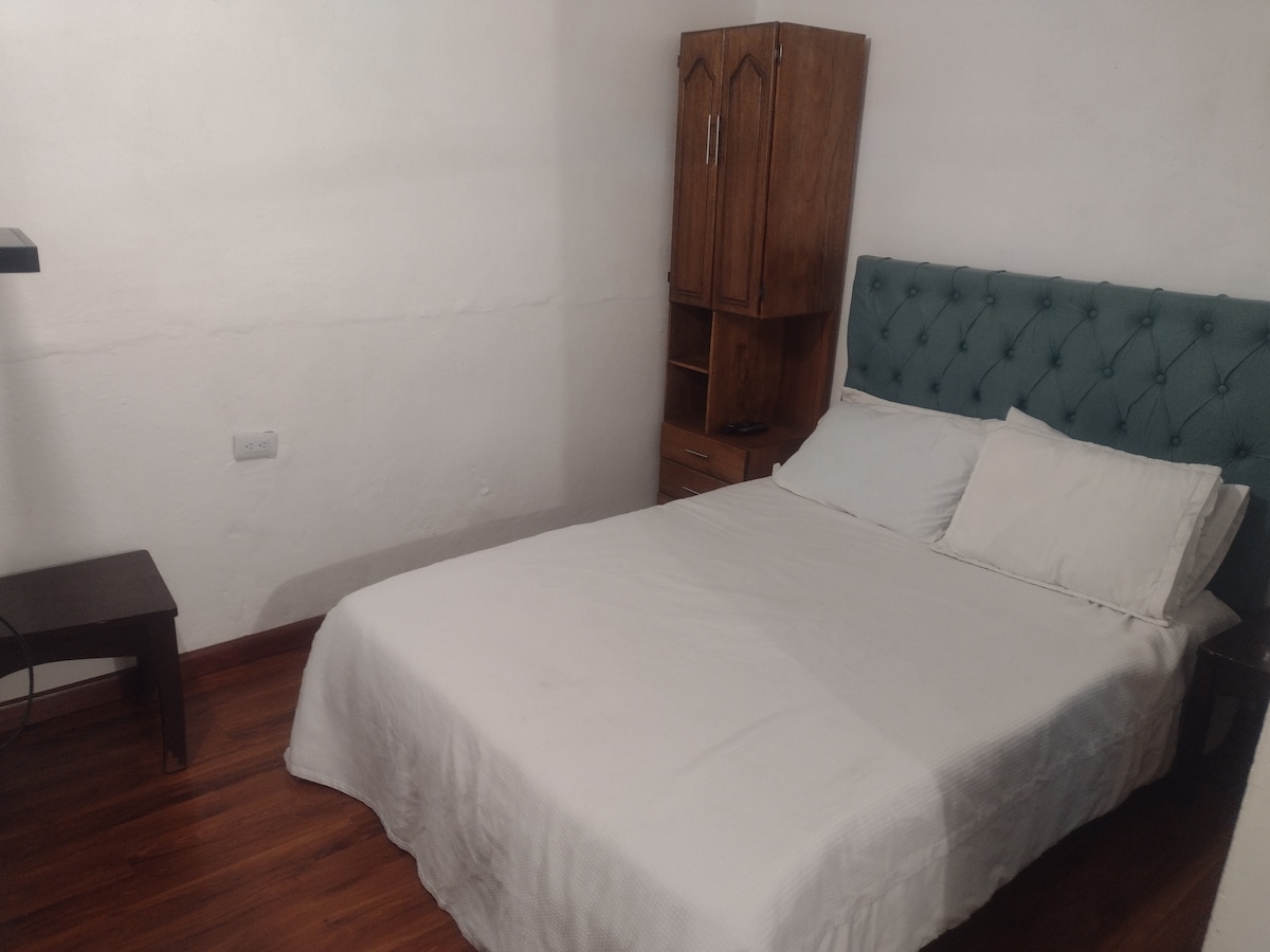 Hermosa habitación con 1 cama doble, baño privado con agua caliente, cuenta con televisión satélite, WiFi, ventilación e iluminación natural. Cerca de la Plaza Mayor. Perfecta para parejas. Esta habitación está dentro de mi casa, los huéspedes son autónomos en el uso de las instalaciones, la zona es muy tranquila perfecta para descansar y relajarse en villa de leyva.
