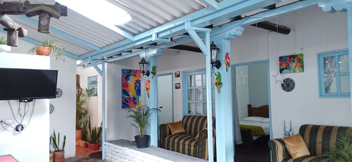 Nuestra encantadora casa colonial, situada a solo a unas cuadras de la Plaza Mayor, ofrece una estancia única en Villa de Leyva. Con capacidad para 11 personas, cuenta con 4habitaciones acogedoras, cocina tradicional completamente equipada y un patio interior con jardín. Ideal para familias y grupos de amigos. Disfruta de la historia y la belleza natural de la zona desde la comodidad de nuestro hogar.