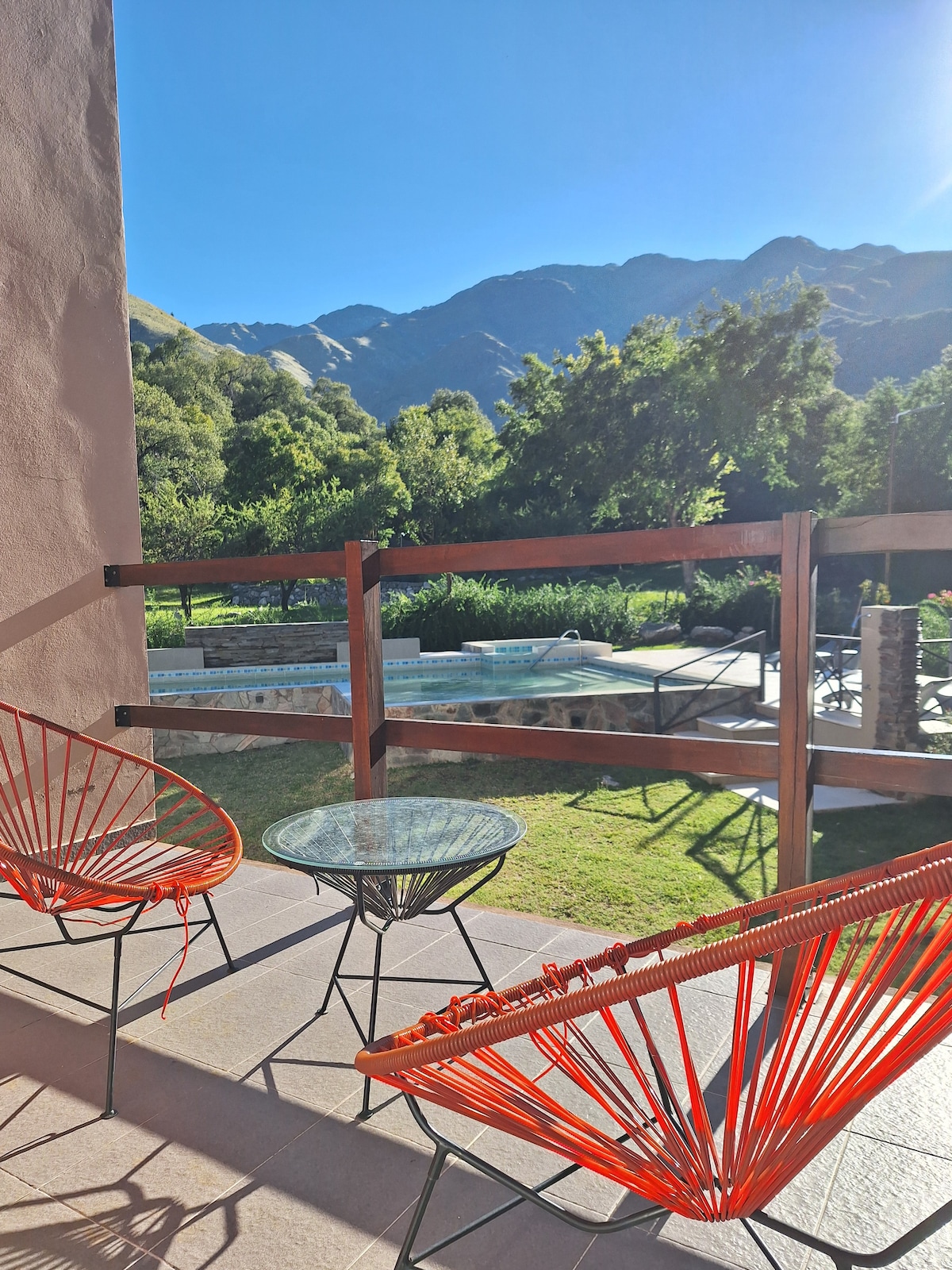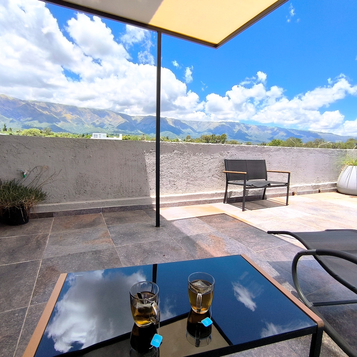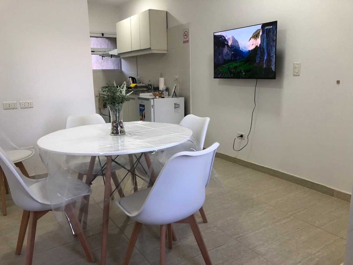 Equipped for two people with top-notch items, you will find a pleasant rest on our King+ box spring, you can enjoy the beautiful sunrises and sunsets on the terrace observing the majestic Comechingones mountains. A few meters from bars, some restaurants and a few blocks from the bus terminal, historic center and the lively Avenida del Sol: You will love its strategic location! Access to the apartment is by stairs