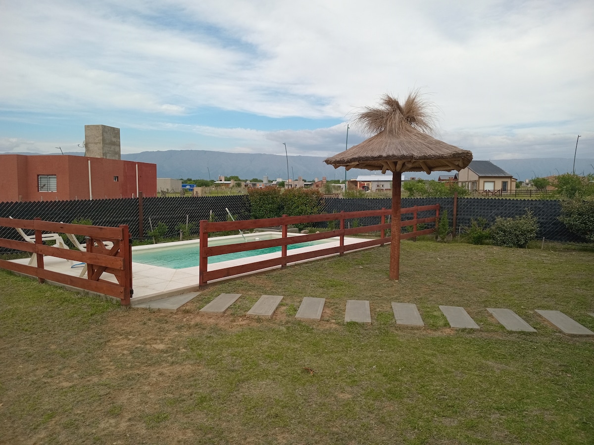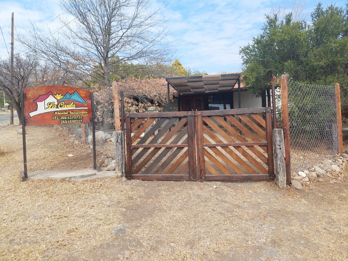 Relax in this unique and peace full . Surrounded by unparalleled beauty, in the middle of the mountains, it is located in a residential neighborhood with beautiful houses around it, just 12 minutes by car from the center of Villa de Merlo and 5 minutes from the Piscu Dam. Yaco with its beautiful beaches with crystal clear and warm waters that invite you to do water sports and swim. In a mountain house you will find peace, beauty and harmony, ideal for forgetting about your daily routine.