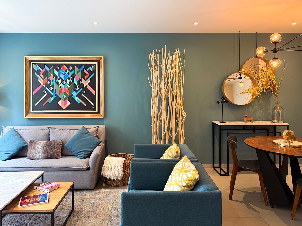 You’re about to discover your next stay! We’re thrilled to welcome you to our apartments. This building is not only in a prime location, but it also tells a story that celebrates contemporary Mexican art and culture. From handcrafted Talavera pieces made in Puebla to iconic quotes by renowned Mexican creatives like Octavio Paz and Alejandro González Iñárritu, every corner is designed to inspire you. Plus, you’ll get to enjoy one of the best views in the city.