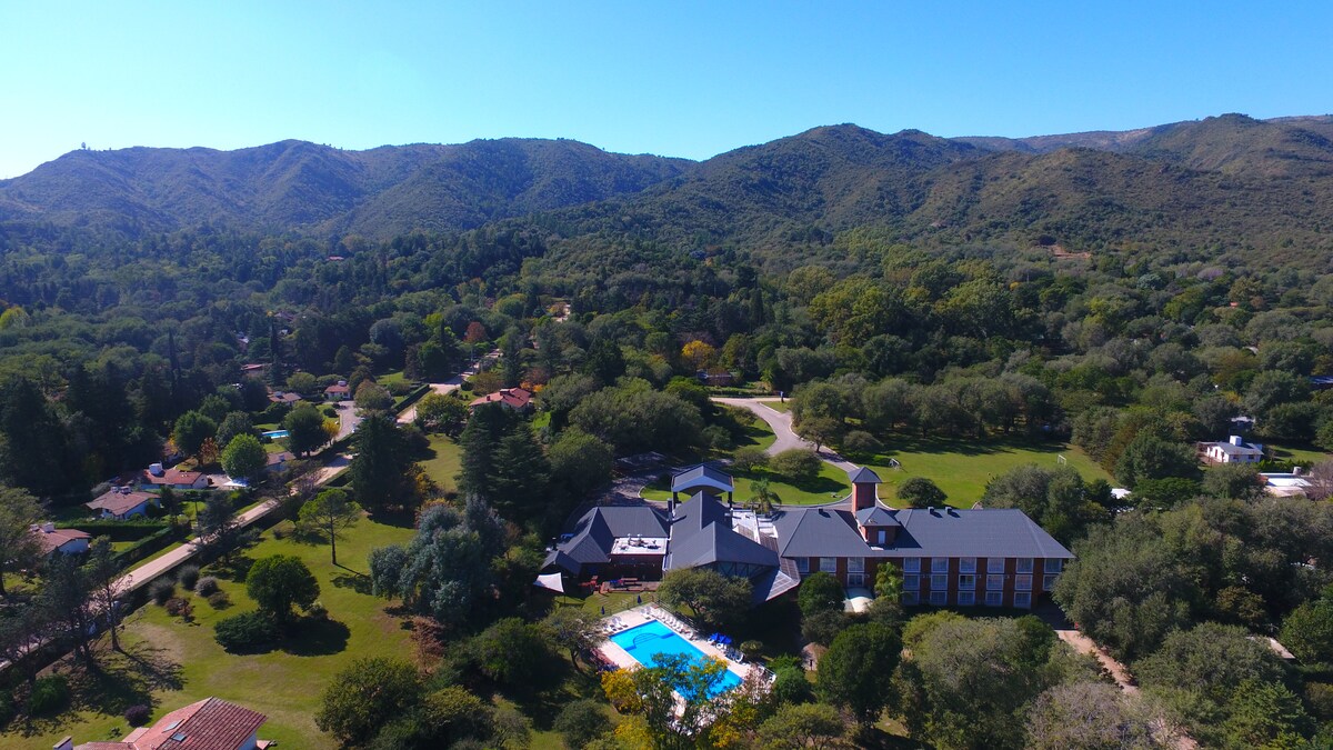 Contamos con 46 habitaciones de 35 m², las cuales pueden ser twin o matrimoniales, con vista hacia las sierras chicas o a nuestro majestuoso parque. Son amplias, luminosas, equipadas con el confort y el buen gusto que usted se merece. Contamos con rampa de acceso para discapacitados, y habitaciones para personas con dificultades motrices. El hotel posee también habitaciones interconectadas para la comodidad de los grupos o las familias.