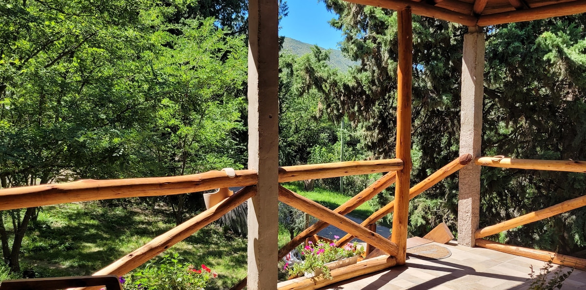 Relajate en este espacio tranquilo, cómodo y elegante, un rincón sereno en las sierras de Córdoba. El acogedor dormitorio te espera para un descanso reparador en el medio del bosque. Disfruta de la naturaleza, de las vistas que te dejaran sin aliento desde todas las ventana. Podes contratar cabalgatas,realizar lindas caminatas disfrutando de los espectaculares atardeceres, pasear por los ríos cercanos, visitar La Cumbrecita.