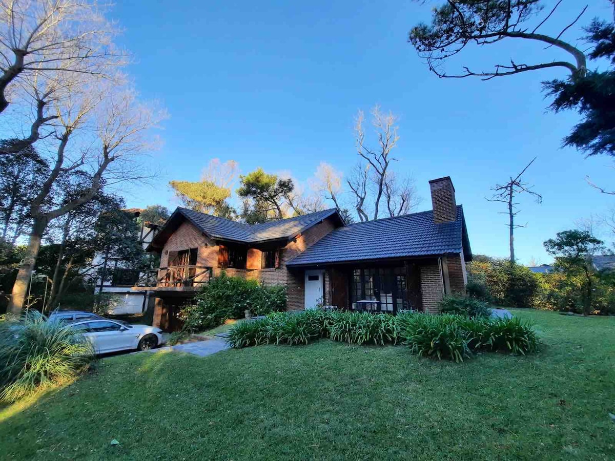Mar y bosque, muy soleada, luminosa, en el corazón de Mar de las Pampas. Calle de cul de sac sin salida de casas tranquilas y familiares y muy cerca de todo. Super equipada con todo lo indispensable para pasar unos días de descanso, para disfrutar a pleno del mar, del bosque, del hogar a leña y los paseos comerciales y gastronómicos. Planta alta: living comedor cocina lavadero independiente y terraza balcón con parrila techada y escalera al parque. Planta baja: 4 dormitorios 2 baños completos.