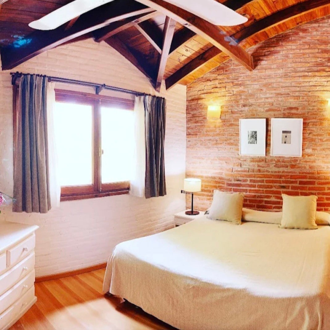 La casa cuenta con 4 habitciones en suite – 1 playrrom con 4 camas y baño completo – dependendia de servicio con baño propio – Total 6 dormitorios – lavadero completo – cocina con lavavajillas y lavasecarropas – living con chimenea – pileta . Fibra opctica wifi / cable . Caldera a gas natural y aberturas de pvc doble vidrio. Se cobra un Fee adicional de 250 usd de limpieza y blanqueria al ingresar a la propiedad