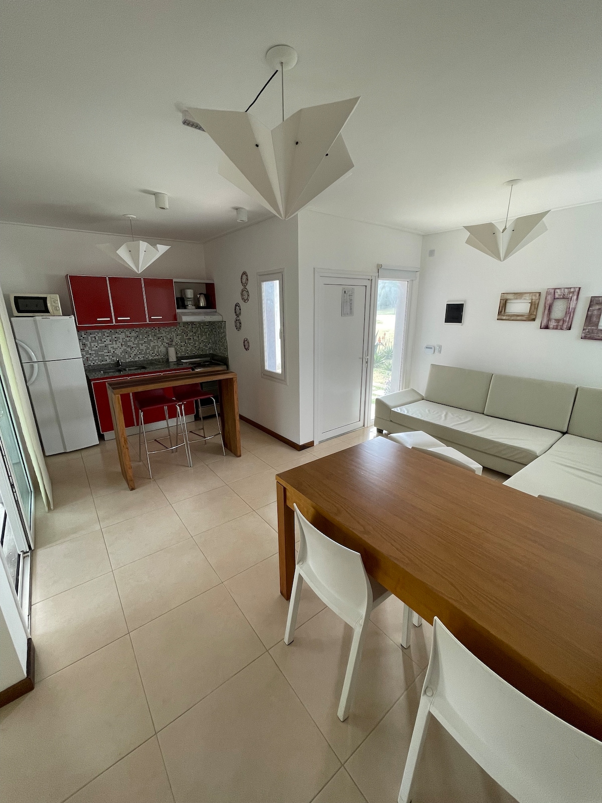Cabaña a estrenar !!, Que junto a su terraza de madera al exterior otorgan 75mts de hermosas vistas en todo su perímetro , techos de madera , ambientes cálidos y una iluminación muy acogedora ; Parrilla en balcón junto a la cocina , dormitorio amplio y baño con ante baño e hidromasaje . Se encuentra ubicada en el centro y comparte su entorno con galerias , restaurantes y complejos , su ubicación con respecto al mar es de tres cuadras .