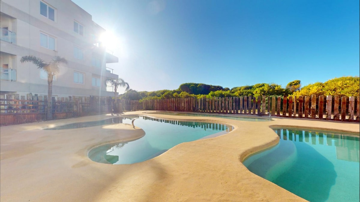 Acogedor departamento de 2 ambientes frente al mar en Mar de las Pampas, ideal para familias que buscan comodidad, practicidad y contacto con la naturaleza. Ubicado en Dunas del Mar Resort, único complejo frente al mar de la zona, el departamento cuenta con pileta climatizada in/out, jacuzzi, sauna, gimnasio, sala de juegos, masajes, desayuno incluido, limpieza y ropa blanca, además de living comedor con deck y parrilla, cocina equipada, dormitorio con vista al mar, cochera y seguridad 24 hs.