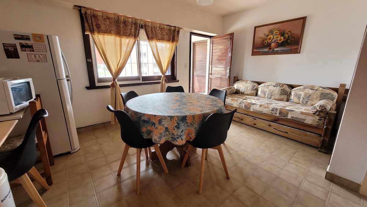 Departamento con cochera en excelente ubicación, sobre playa, con maravillosa vista al mar! Disfrutá de amaneceres increíbles desde la ventana! Que comodidad bajar y estar en la playa! Cuenta con: Internet. TV por cable. Dormitorio con aire acondicionado, colchón de alta densidad, placard. Comedor con mesa, sillas, sofá cama con carro, Smart TV, microondas, estufa tiro balanceado. Cocina separada, balcón con vista al mar, heladera c/freezer. Capacidad máxima 4 personas Segundo piso por escalera.