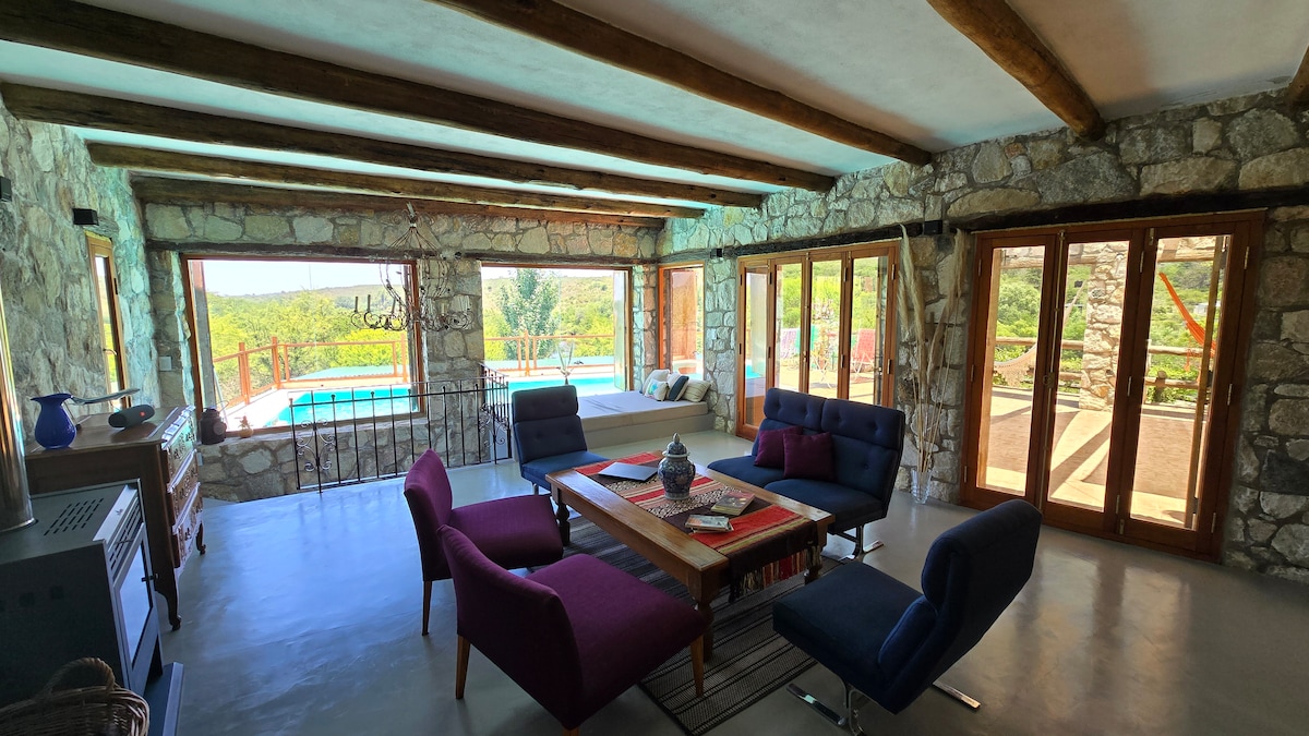 The contemporary house and the stunning landscape melt without invading nature. Views are incomparable, 360 degrees from everywhere! Enjoy stunning sunsets while preparing your barbeque in the cozy gallery. THE POOL DOES NOT HAVE A PROTECTIVE FENCE. THIS PROPERTY IS NOT RECOMMENDED FOR FAMILIES WITH BABIES OR YOUNG CHILDREN WHO DON'T KNOW HOW TO SWIM