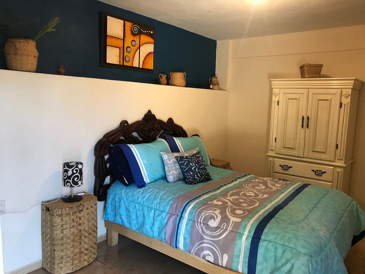 Habitación con dos camas matrimoniales, baño completo, televisión por cable, estacionamiento e Internet gratuito. Forma parte de un pequeño complejo integrado por cuatro habitaciones. Las zonas comunes para huéspedes son estacionamiento, salas en recepción y una bella terraza, en la cual podrás tomar fotos espectaculares . La propiedad tiene excelente vista frontal hacia la Peña de Bernal. En nuestro espacio te sentirás relajado y en armonía con el entorno.