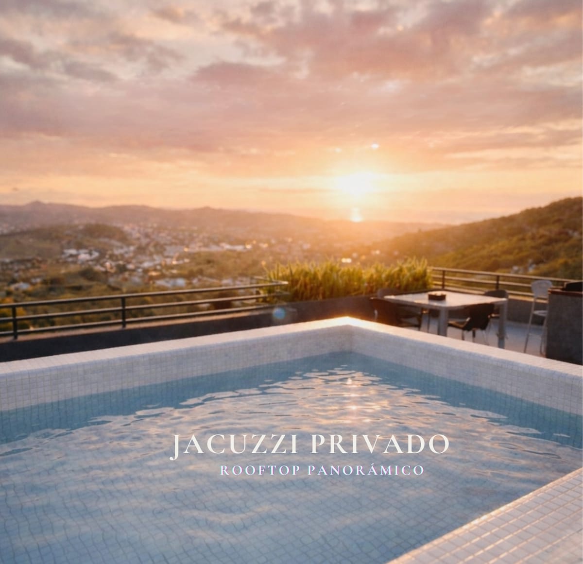 Descubre una experiencia exclusiva en esta suite boutique con jacuzzi privado en terraza y vista panorámica a Guanajuato. Un refugio íntimo diseñado para quienes valoran privacidad, elegancia y momentos inolvidables. Desde el atardecer hasta la noche iluminada, el jacuzzi exterior privado se convierte en el escenario perfecto para relajarte mientras la ciudad se despliega frente a ti.