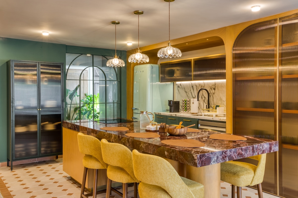 Recién remodelado con diseño retro-moderno, este departamento ofrece tres recámaras que combinan madera y mármol en un ambiente elegante y acogedor. Con mobiliario curado, textiles de alta calidad e iluminación sofisticada, invita al descanso y la convivencia. Ubicado en la icónica calle Ámsterdam, pone a sus huéspedes en el corazón de la Condesa, cerca de parques, restaurantes y cafés, ideal para viajeros que buscan confort y estilo cosmopolita.