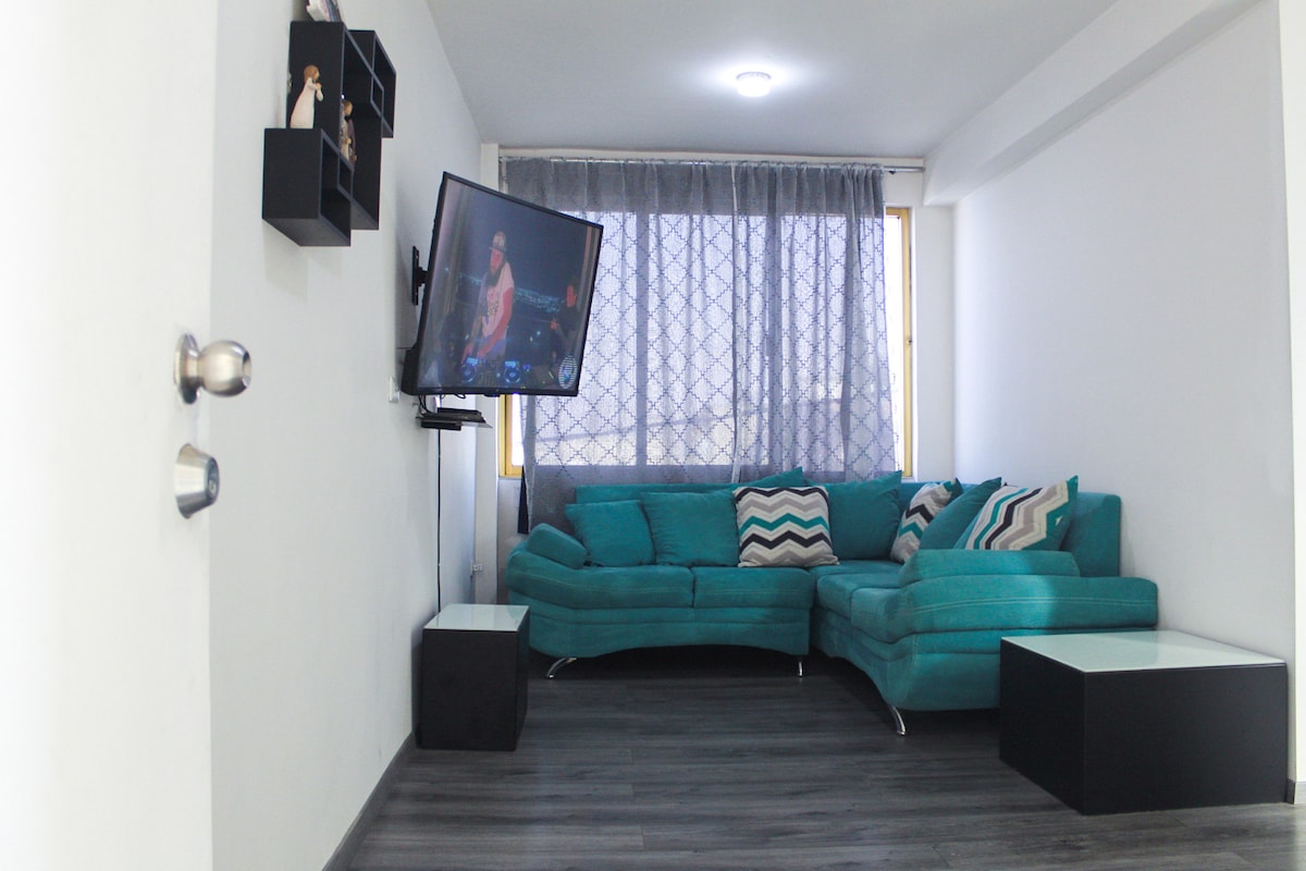 Disfruta de la sencillez de este alojamiento tranquilo y céntrico. A 10 minutos del Aeropuero y foro sol. Con todos los servicios esenciales. Agua caliente 24/7. WiFi. Televisión de 70'' un cajón de estacionamiento. Seguridad las 24 horas. Con elevador. Y un sofá cama matrimonial en la sala de estar.