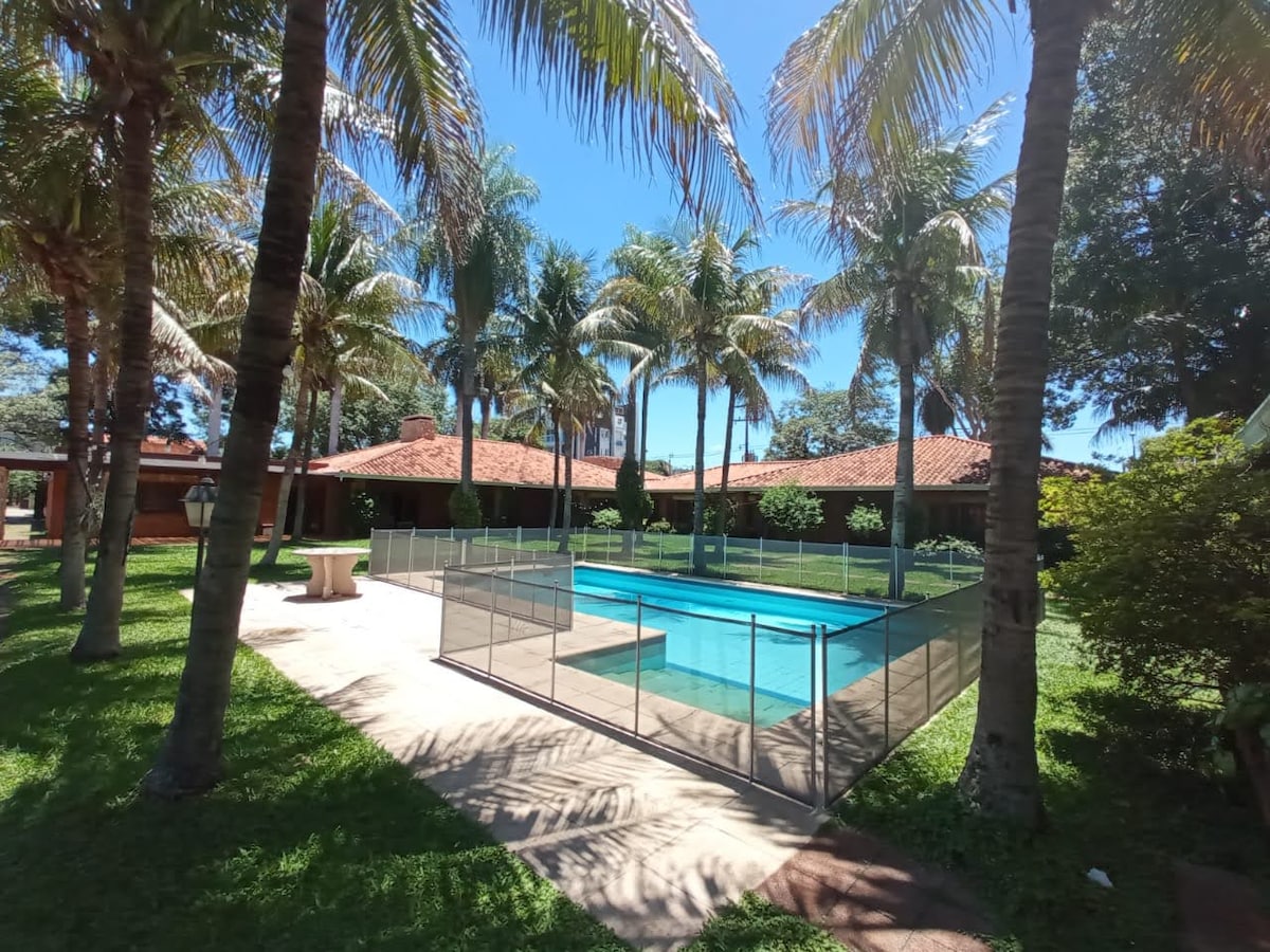 Fully Private Cozy Familiar Cottage design to escape from the city and relax in nature connected eviroment, Adressed to those who like quiet places with many outdoors activities. 15 minutes away from Luque City Center and 25 from International Airport. Easy access and supply shops in sorroundings You''ll have -Fully Equiped Kitchen -5vs5 Natural Grass Soccer Field -25mts Long Basketball Field -12mts long Swimming Pool -Little Amusement Park for Kids -High Speed Internet for remote work