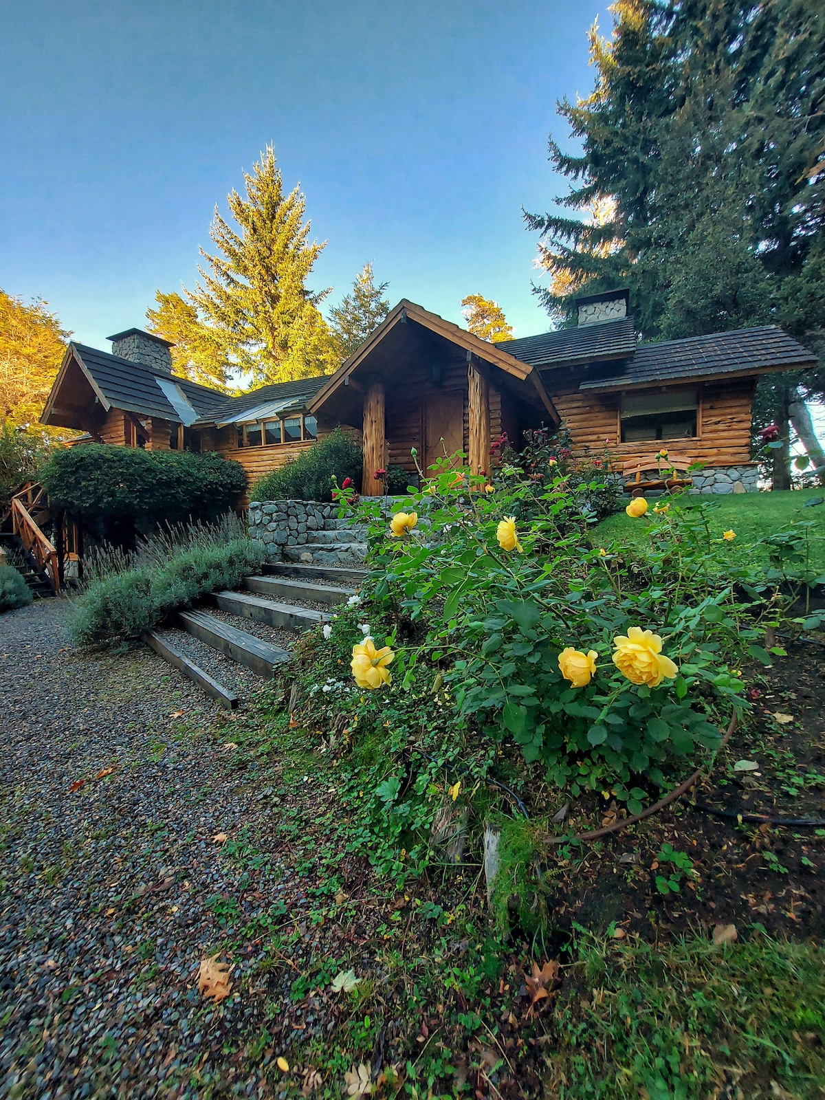 Fonsagrada.Bariloche Charming house located in a residential neighborhood with easy access. Surrounded by Patagonian nature in the west of Bariloche, just 300 meters from the beach and Nahuel Huapi Lake. Two fully equipped and heated floors with spacious and bright areas. Its exuberant garden offers panoramic views of Campanario and López Hills. Comfort, tranquility, nature, and wellness invite you to enjoy an authentic stay in a unique and unparalleled environment.