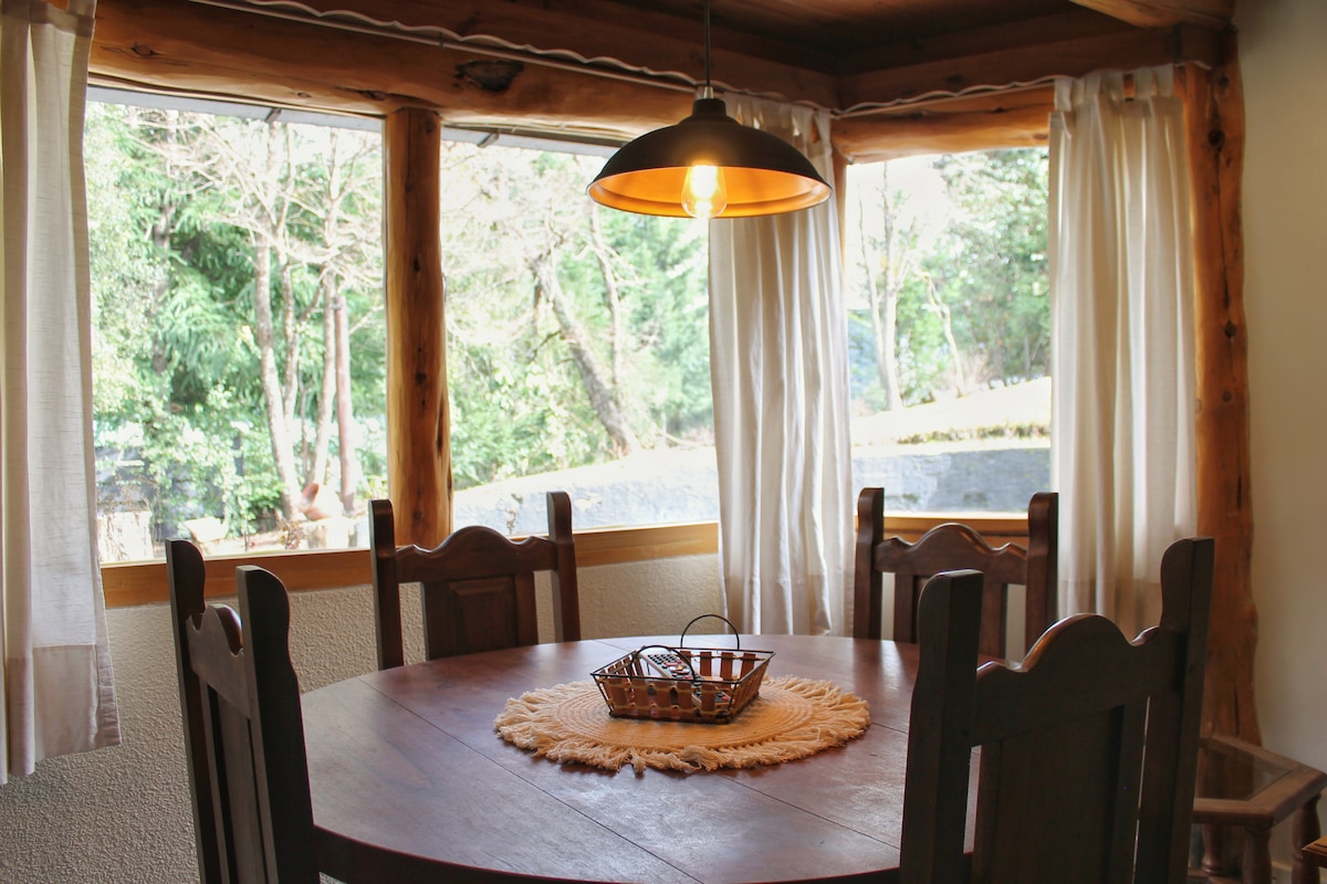 En esta cabaña vas a poder descansar y disfrutar de una hermosa tranquilidad estando a metros del centro. #2 es tu cabaña si viajas solamente vos o con tu mascota, si venís en pareja, con familia o amistades. Es una unidad cuádruple distribuida en dos plantas, las habitaciones se encuentran en planta alta y los usos sociales en planta baja. Se encuentra equipada con todo lo necesario para que puedas relajarte, descansar y disfrutar tus días en Villa.