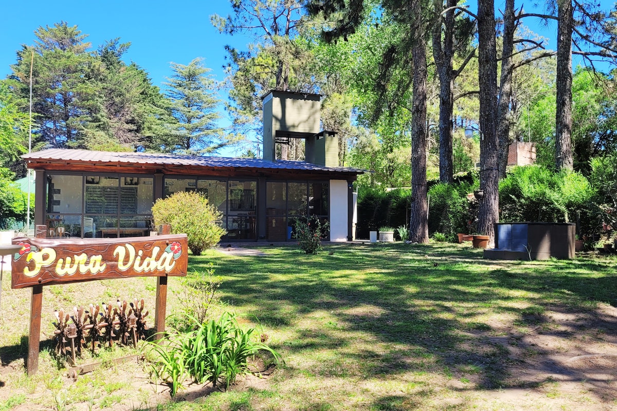 Nuestra acogedora cabaña está rodeada de naturaleza, ideal para poder desconectar de la rutina. Contamos con un parque de 8000 m2 con algarrobos, chañares, espinillos entre otros. Se pueden observar aves autóctonas, zorros, liebres... Estamos a solo 5 minutos del centro de Villa General Belgrano y 10 del río Los Reartes.