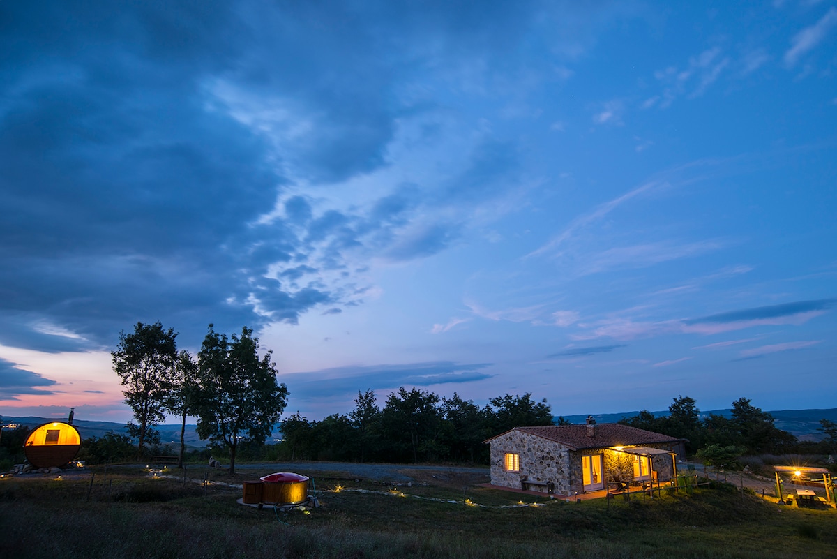 This beautiful sheepherder’s stone cottage is equipped with modern comforts and spa facilities free of charge. The large grounds of forest and meadow span a ridge and provide panoramic views of the valley toward Val d’Orcia to the north, the expansive Maremema to the south, and the ancient volcano of Amiata to the west. This is the perfect getaway for those wanting a private retreat from which to explore the rich wine, food, culture, history, and landscape of southern Tuscany.