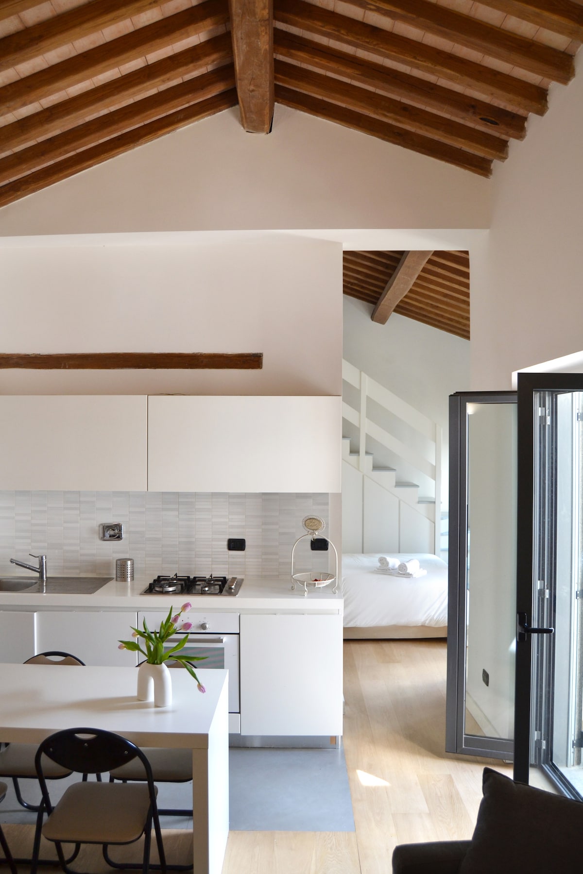 L'appartamento si trova al 2° ed ultimo piano di una palazzina medioevale, con affacci su San Pellegrino e Pianoscarano, luminosa, centrale e al tempo stesso silenziosa. Il panorama spazia fino al Monte Argentario, coronato da romantici tramonti. Lo stile è unico e provenzale con il pavimento in cotto chiaro, le pietre dipinte di bianco e le caratteristiche travi di legno...i dettagli sono come sempre ricercati per offrirvi il massimo della bellezza e del comfort.